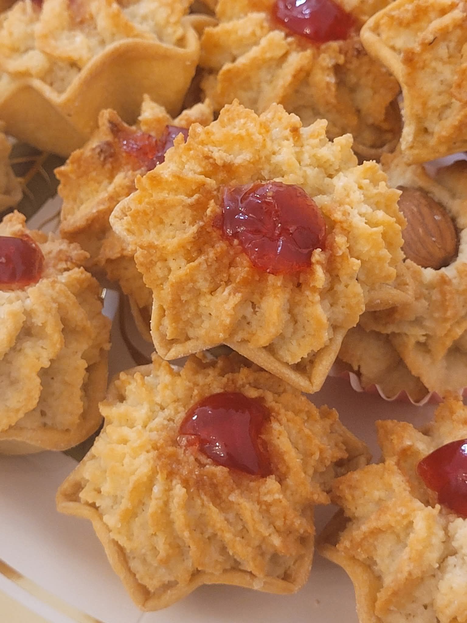 לקחת את תערובת השקדים לשים בשקית זילוף עם צנטר כוכב ולזלף בתוך הבצק שהנחנו בתבנית של המאספן